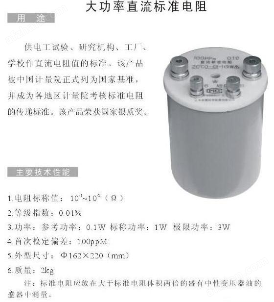BZ3直流标准电阻产品技术指标