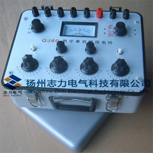 产品简介: QJ60型教学用直流单双臂电桥用来测量10-4~1111000Ω的直流中、低电阻,金属导体的电阻率,导线电阻,直流分流器电阻。