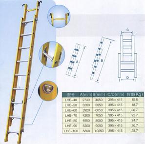 绝缘伸缩梯伸缩绝缘单梯由上、下两单梯组成,利用滑轮组及拉绳使上梯升降自如。