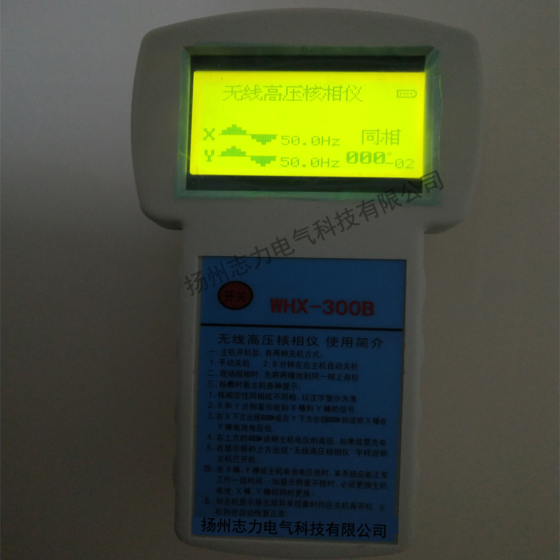 屏显内容:无线高压核相仪、不同相、同相、 X、Y 。
