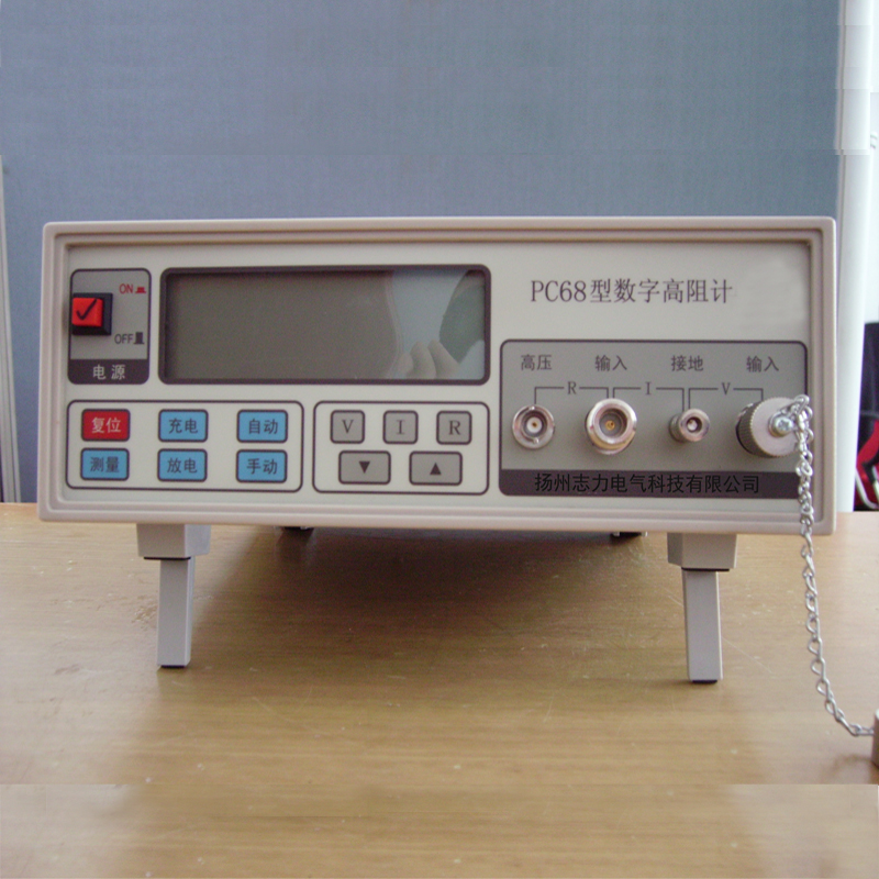 PC68型数字高阻计是集高阻、微电流、直流电压多种功能为一体的测量仪器。它在设计上采用了较新的技术,使用微处理器以改善测量功能和提高测量速度;开关盒控制按钮设计都是轻触键。它除了具有一般高阻计的功能之外,还具有微电流及直流电压的测量、快速自动量程转换、超出测量范围提示功能,且具备多路标准测量电压:10V、25V、50V、100V、250V、500V、1000V,因此PC68型数字高阻计适合于各行各业防静电表面电阻、体积电阻、绝缘材料、微电流及直流电压的测试。